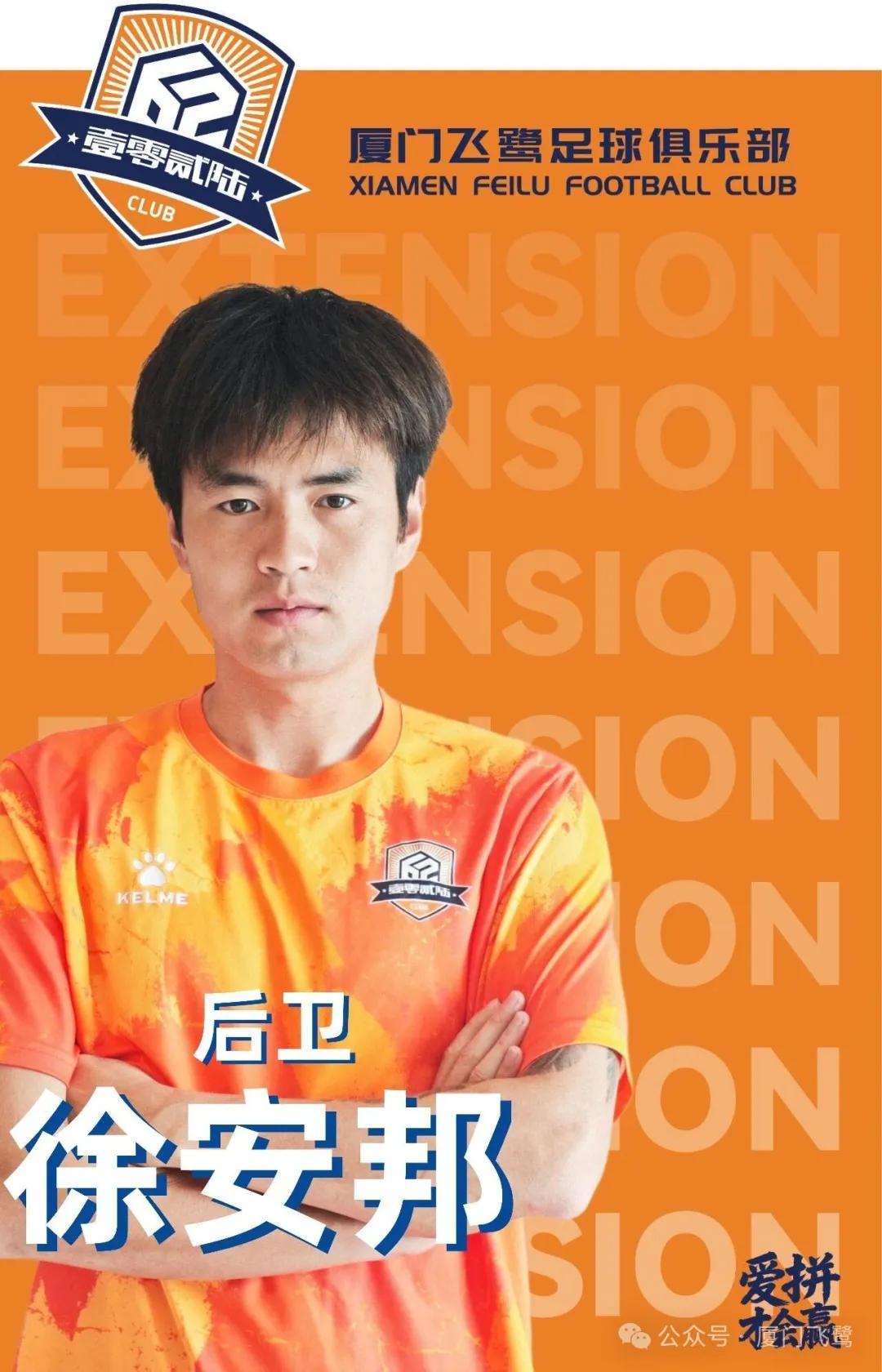 经过俱乐部与徐安邦友好协商,现正式宣布,徐安邦将在2026赛季继续为厦门飞鹭足球俱乐部效力,双方已签署续约协议。