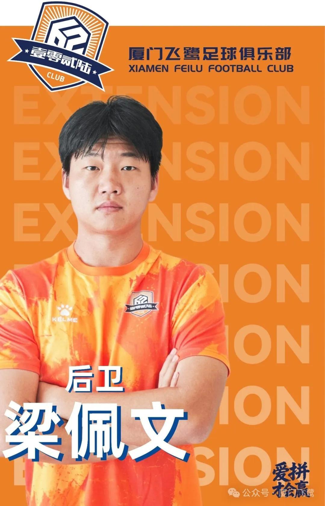 经俱乐部与梁佩文友好协商,现正式宣布,梁佩文将在2026赛季继续为厦门飞鹭足球俱乐部效力,双方已签署续约协议。